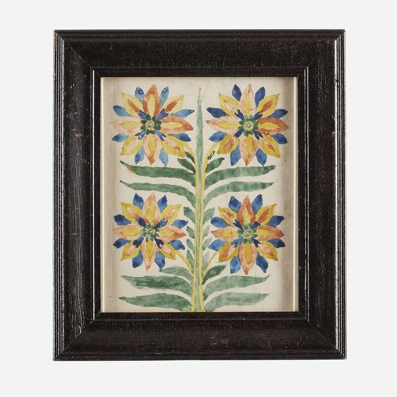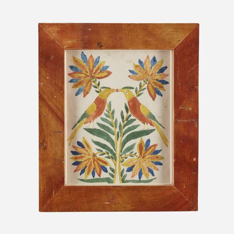 Manner of the Rockhill Artists Two Fraktur: Four Flowerheads and Two Birds, 19th century