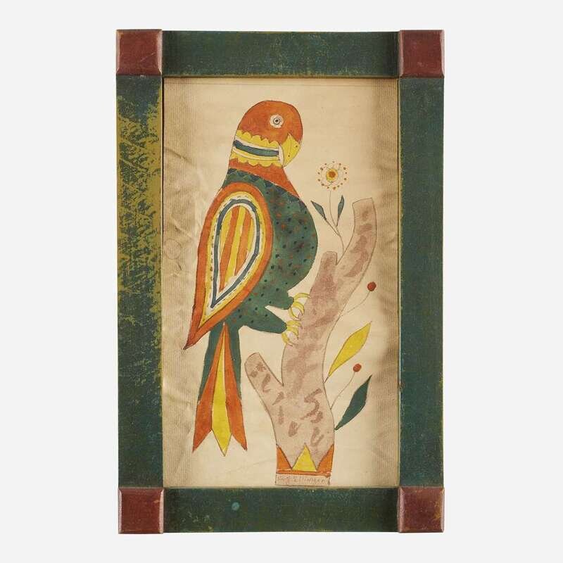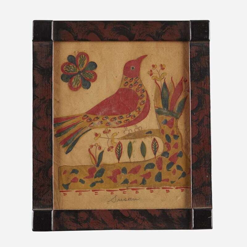 David Y. Ellinger (1913–2003) Two Fraktur: Birds on Branches
