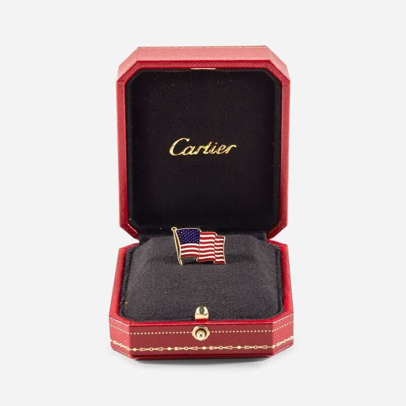 September 11, 2001 "We Remember" memorial 18-karat gold and enamel American flag pin Cartier, Paris, France, after 2001