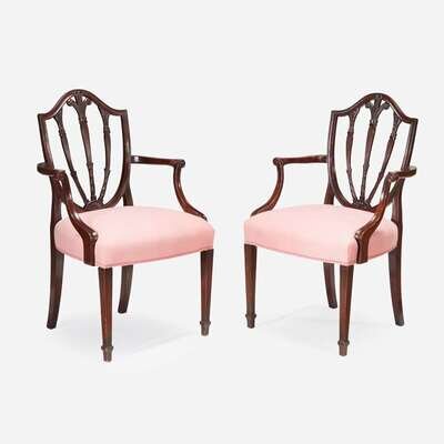 Pair of George III carved mahogany shield-back armchairs circa 1785