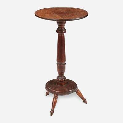 Turned dished-top kettle stand on tripart base 19th century