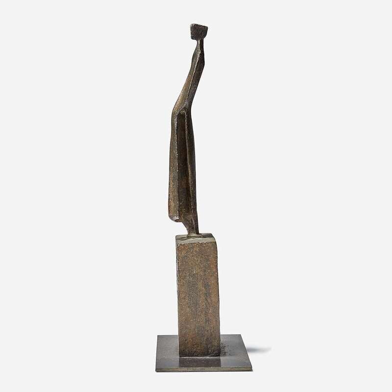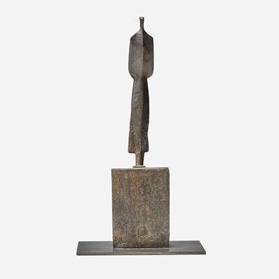 1961, stamped with artist's monogram on base. Bronze with brown patina on metal base.