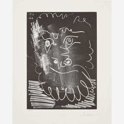 Pablo Picasso (Spanish, 1881-1973) Tête d'Homme Barbu (from Papiers Collés)