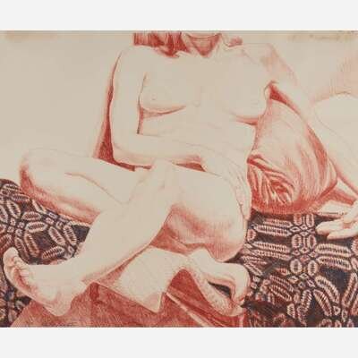 Philip Pearlstein (American, b. 1924) Girl on Blue Coverlet