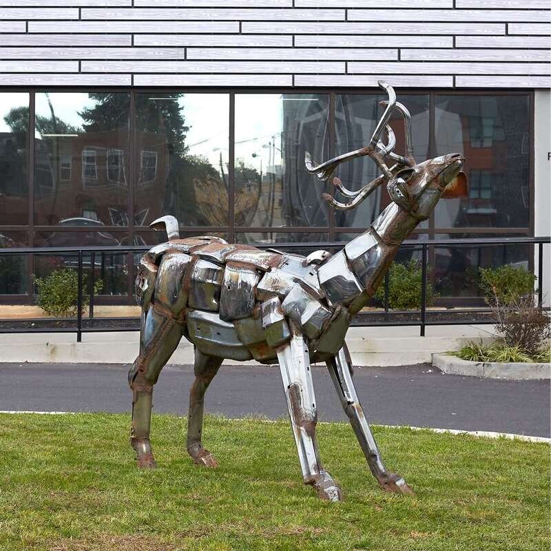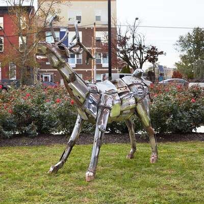 With torch-cut initials and dated 79 on right haunch, welded chromed steel assemblage.