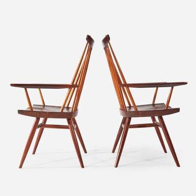 George Nakashima (American, 1905-1990) Pair of "New" Armchairs, New Hope, Pennsylvania, circa 1961