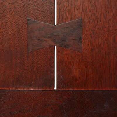 With two leaves. American black walnut, rosewood Table and each leaf signed with client's name.