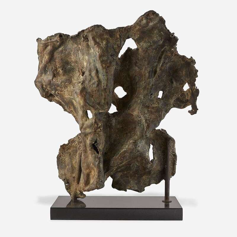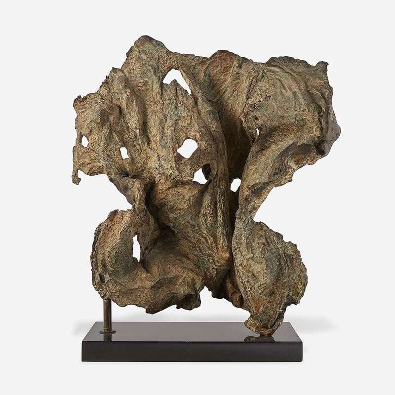 Signed with initials and dated 95 along bottom edge verso, bronze with brown patina on black marble base.