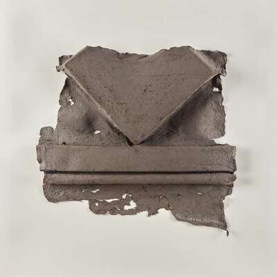 Signed and dated ©82, mixed media handmade paper relief mounted to board.