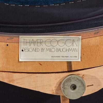 Upholstery, chrome-plated steel Each section signed with applied manufacturer's label: "Thayer Coggin Designed by Milo Baughman"