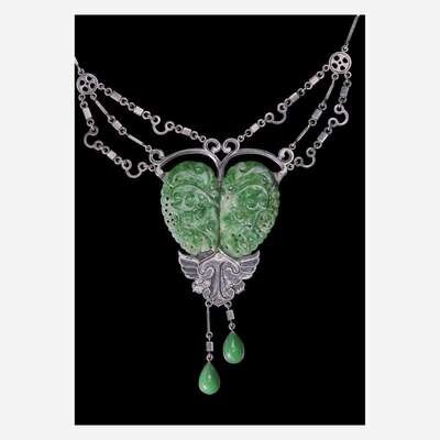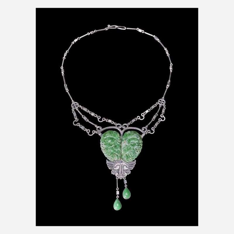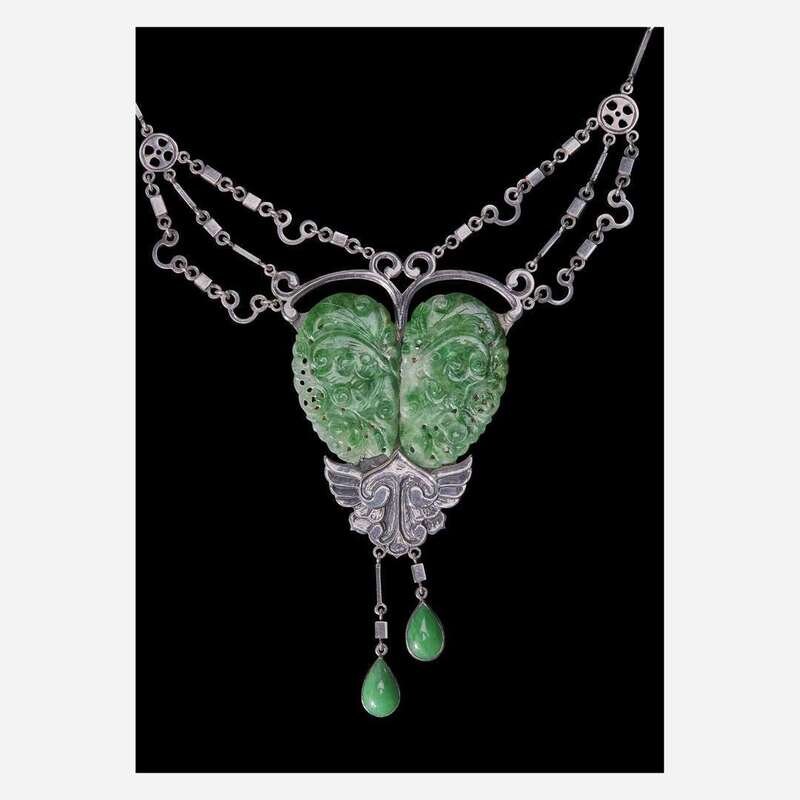 Horace E. Potter (American, 1873-1948) An Arts & Crafts Silver and Jadeite Necklace, Cleveland, Ohio, circa 1907
