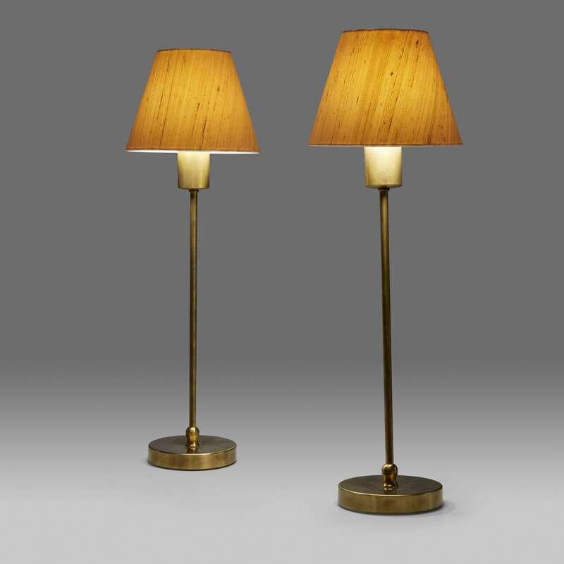 Brass, linen Each stamped to base: "Svenskt Tenn 2332/2" with applied manufacturer's paper label: "S"