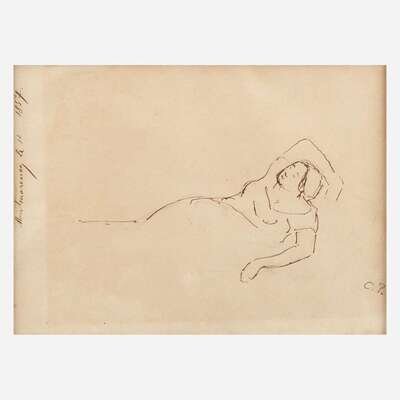 Attributed to Camille Pissarro (Danish/French, 1830–1903) Woman Reclining