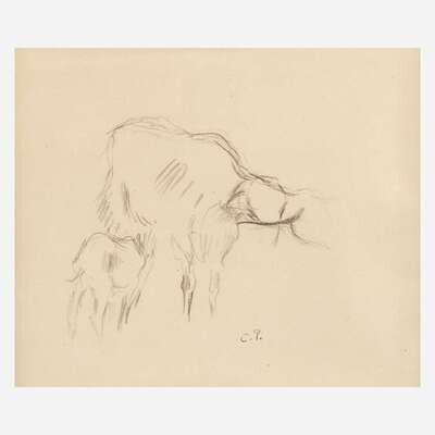 Attributed to Camille Pissarro (Danish/French, 1830–1903) Cows