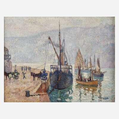 Richard Hayley Lever (American, 1876–1958) Ship Unloading at Dockside