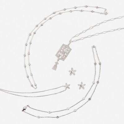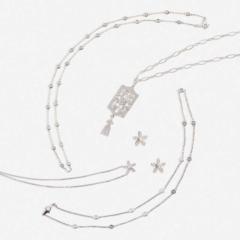A collection of eighteen karat white gold and diamond jewelry