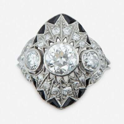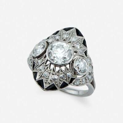 A Belle Époque diamond, platinum, and onyx ring
