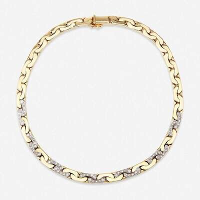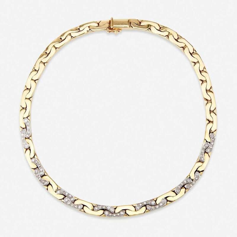 the fancy link chain set to the front with circular-cut diamonds; estimated total diamond weight: 1.40 carats.