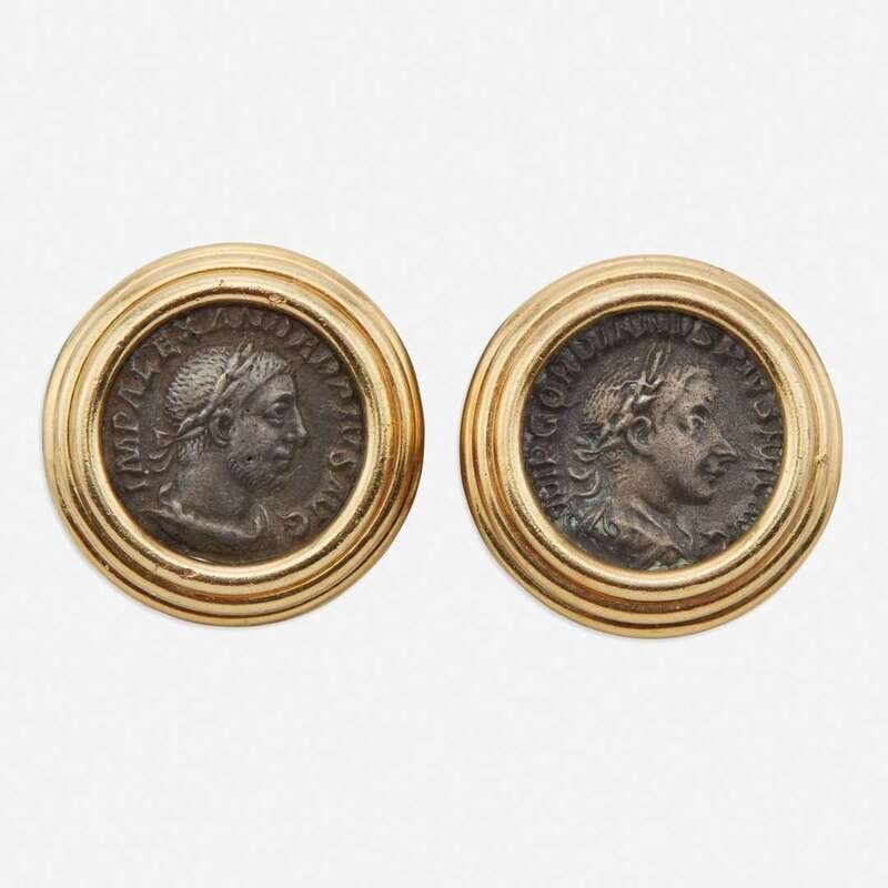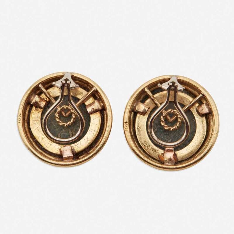 A pair of eighteen karat gold and coin earclips