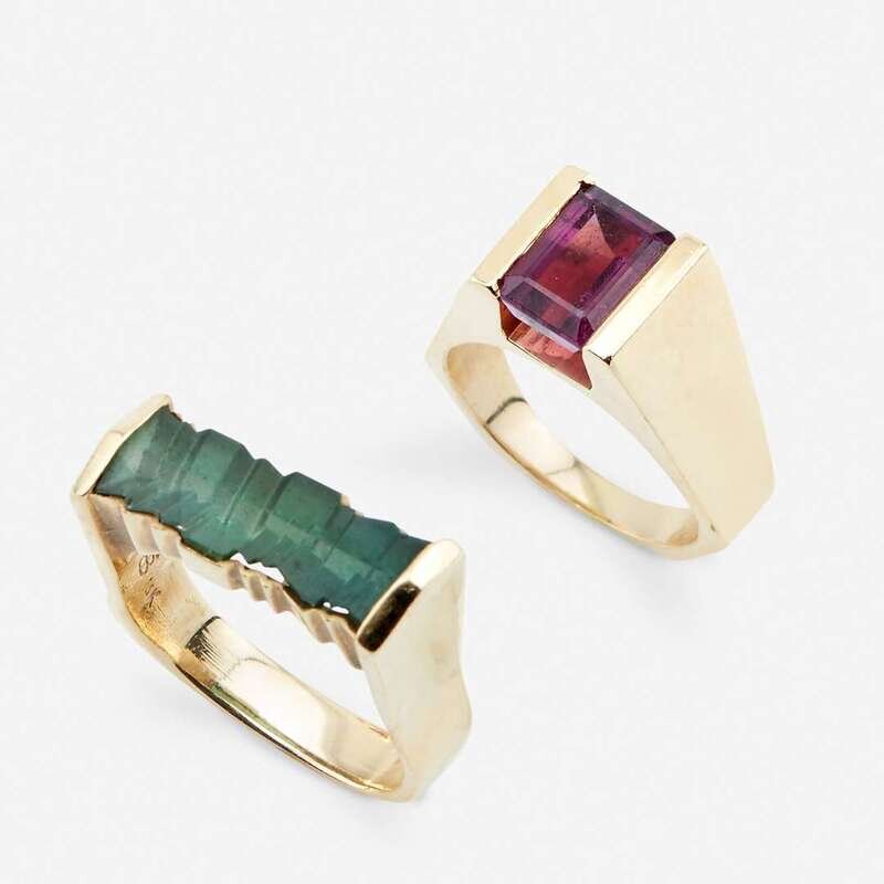 Two fourteen karat gold and tourmaline rings, Baskin Brothers