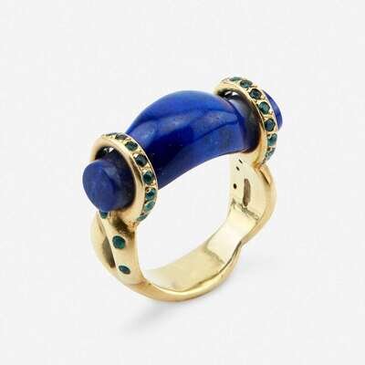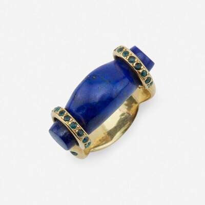 A lapis lazuli, eighteen karat gold, and gem-set ring