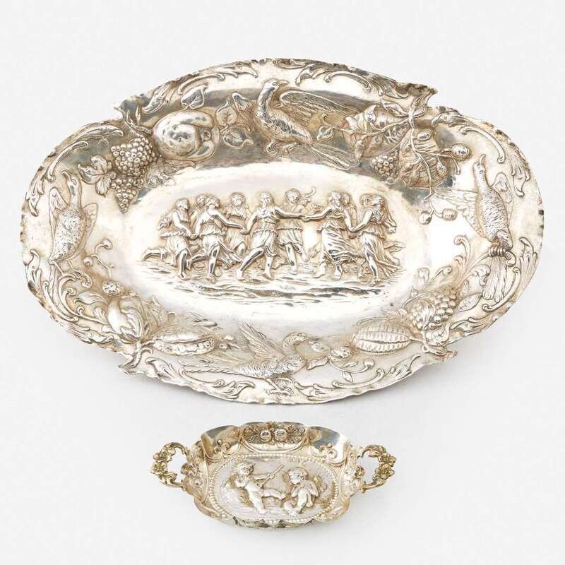 A group of two German Renaissance Revival silver and silver-gilt repoussé dishes 19th century