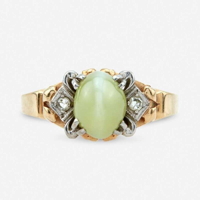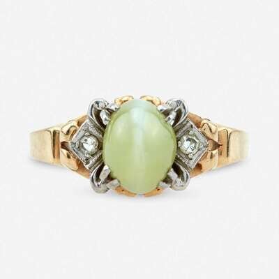 A cat's eye chrysoberyl and diamond ring