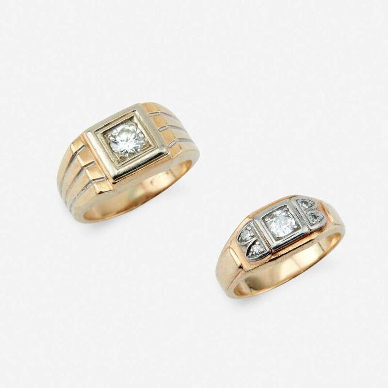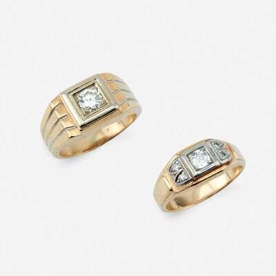 Two fourteen karat gold and diamond rings