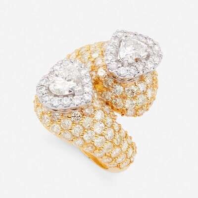 A diamond and eighteen karat two tone gold by-pass ring