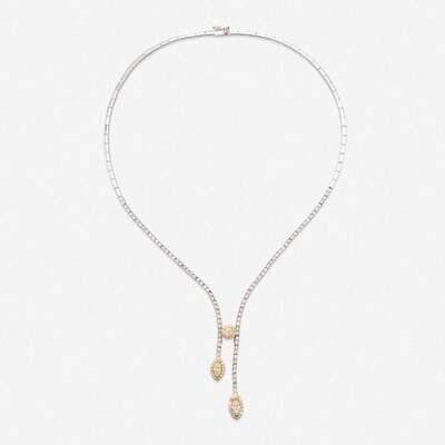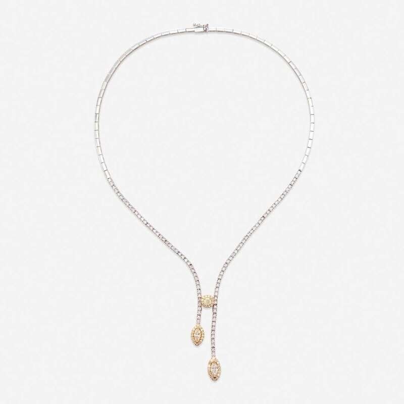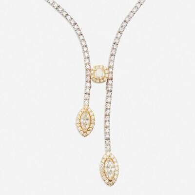 A colored diamond, diamond, and eighteen karat two tone gold long chain