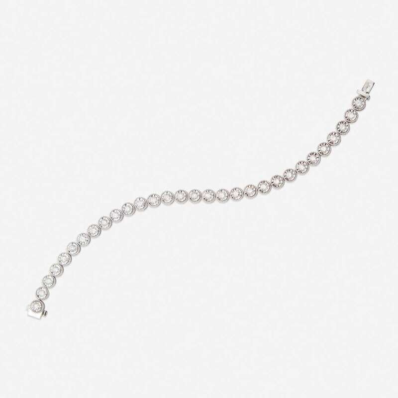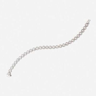 A diamond and fourteen karat white gold line bracelet