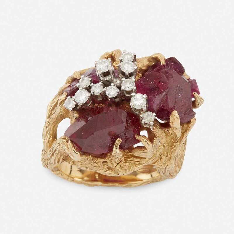 A ruby, diamond, and eighteen karat gold ring circa 1960