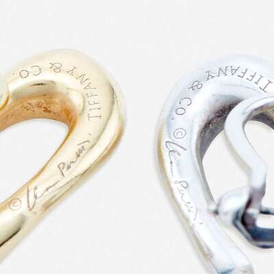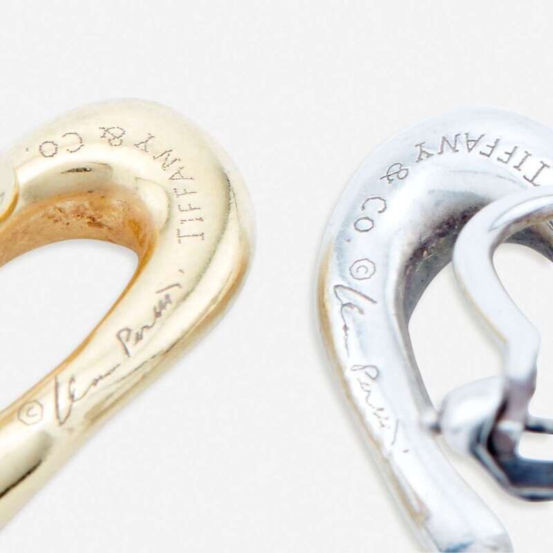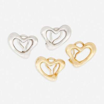 Two pairs of eighteen karat yellow gold or sterling silver earclips, Tiffany & Co. Elsa Peretti, "Open Heart"