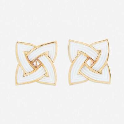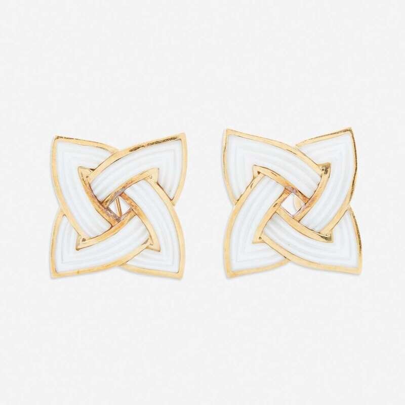 A mother-of-pearl, rock crystal and eighteen karat gold earclips, Angela Cummings 1988
