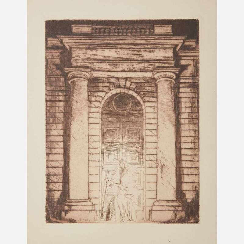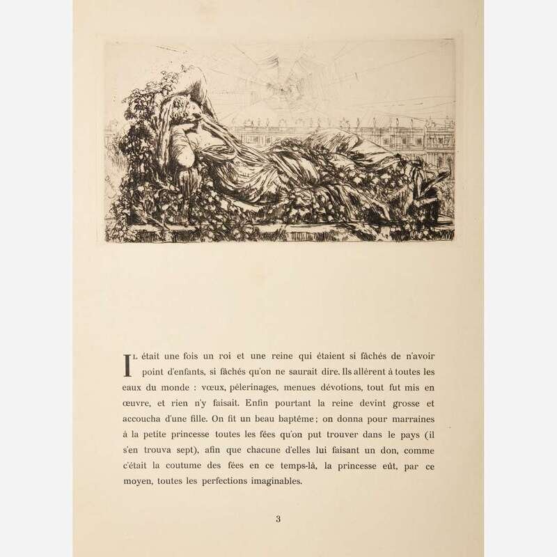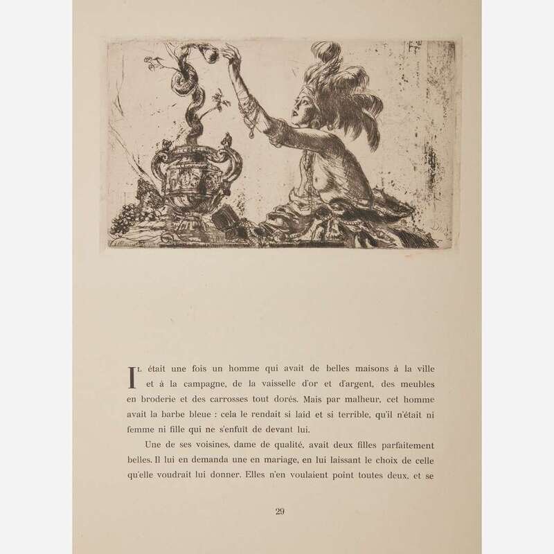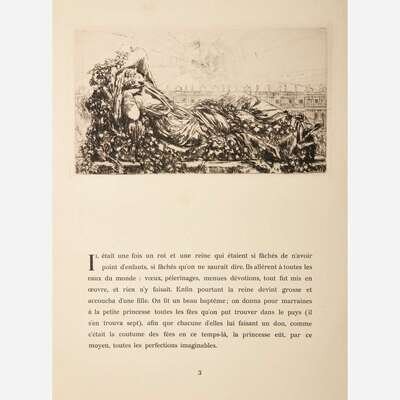 Paris: Editions d'Art de la Roseraie, (1922). First and limited edition, #VII of VIII Exemplaires Speciaux on Japon ancien paper (of 396 total copies). Folio; 16 5/8 x 12 3/4 in. (422 x 324 mm). (viii), 67, (1), v, (7) pp. Preface by Henri de Regnier. Illustrated by Drian (Adrien Etienne) with frontispiece in three states, 40 etched plates (comprising three states of each plate), five in-text etched plates, as well as two original pen and ink drawings and 21 additional etched plates at rear. Original stiff printed wrappers, lightly worn; plates and text loose as issued; in three-quarter brown cloth over marbled paper-covered board portfolio, moderately worn, ties lacking.