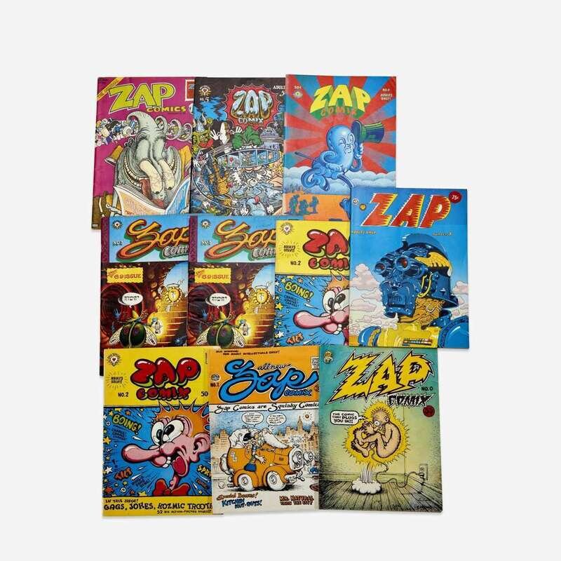 (San Francisco): Apex Novelties, 1967-74. In ten volumes. Mixed issues. Condition varies; scattered marginalia in some issues, some scattered creasing and minor soiling to wrappers. Including: No. 1: Third printing (35 cent cover price, no printer statement on rear wrapper). Marginalia on inside front wrapper and front leaf recto. No. 2 (two copies): Second printing (50 cent cover price, alignment of "Head First" story corrected). Marginalia on first leaf; second copy lacking numerous leaves. No. 0: Second printing (35 cent cover price, hairline mark removed; interior pages not numbered; yellow ink in lettering, top left corner of rear wrapper, removed). Creasing to wrappers; marginalia on first leaf. No. 3 (two copies): First or second printing of each (heavier paper stock of wrappers?). Marginalia on first leaf; second copy lacking numerous leaves. No. 4: Presumed second printing (approximately 2 5/8 in. staple distance from top edge). Marginalia on inside front cover and first leaf. No. 5: First printing (50 cent cover price). Marginalia on first leaf. No. 6: Second printing (75 cent cover price). No. 7: Second printing (75 cent cover price).