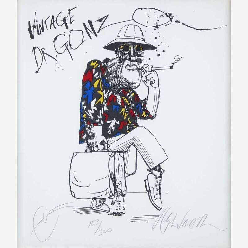 1995. Silkscreen. #103/500 copies, signed by Steadman and Thompson in pencil at bottom. Print: 19 x 16 1/2 in. (483 x 419 mm) (sight). Unexamined out of frame, 21 1/2 x 18 7/8 in. (546 x 479 mm). Scarce.