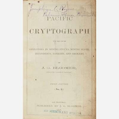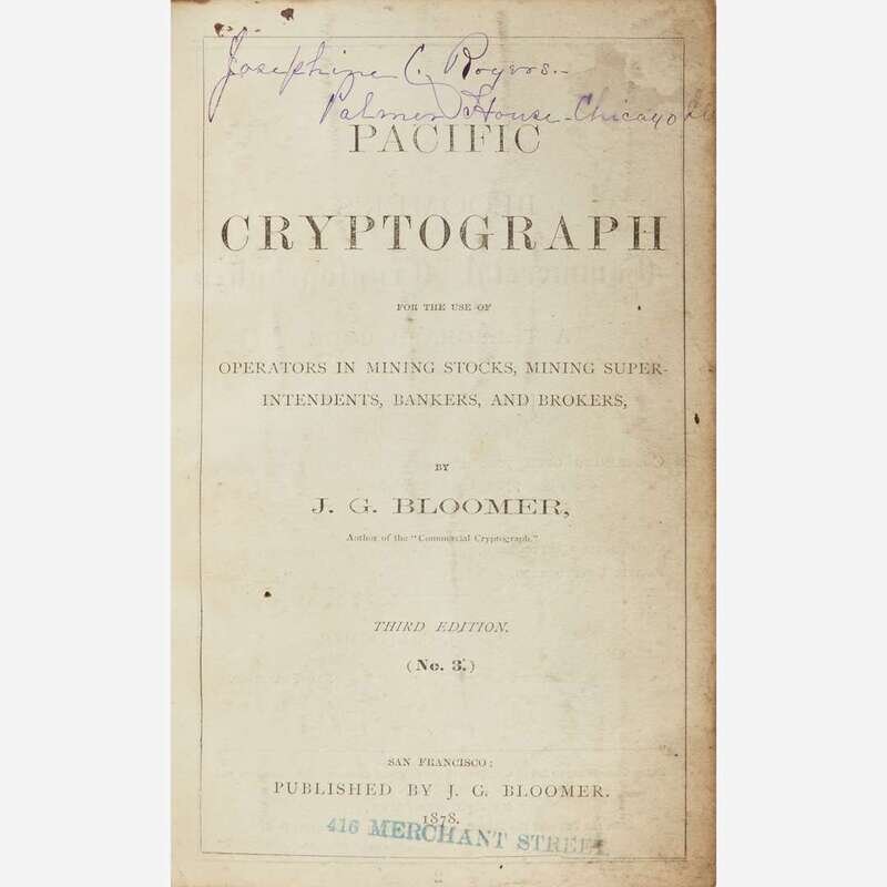 [Finance] Bloomer, J.G. Pacific Cryptograph for the use of Operators in Mining Stocks, Mining Superintendents, Bankers, and Brokers