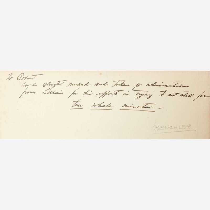 New York: Charles Scribner's Sons, ca. 1892. Oblong 12mo. Endpapers fully intact but book missing pp. (1)-16, which include title-page and contents page. All leaves intact from page 17. From the library of Algonquin Round Table charter member Robert Benchley (1889-1945) and inscribed to him by Lillian Duryea when he was a boy: "To Robert/As a slight reward and token of admiration/from Lillian for his efforts in trying to sit still for/ten whole minutes--" in ink on front free endpaper; also signed "Benchley" in Robert's son Nathaniel's hand, in pencil beneath same. Original illustrated cloth, lightly worn; text block separated, some leaves loose.