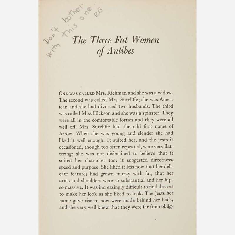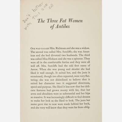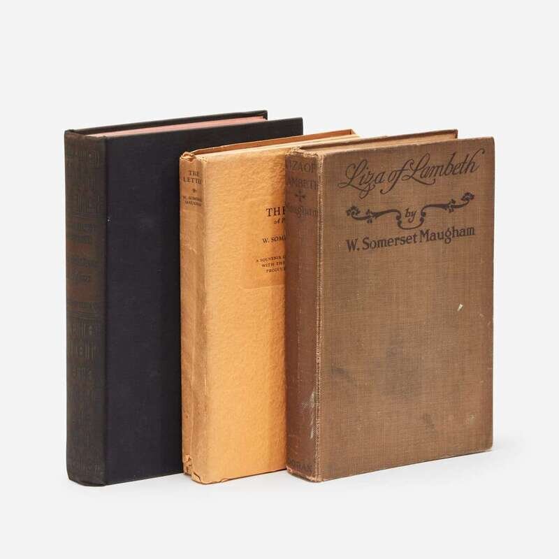 Liza of Lambeth New York: George H. Doran Company, (1921). First American edition. 8vo. 221 pp. Inscribed: "Robert C. Benchley/1425 B'way" in pencil on rear free endpaper. Original green cloth stamped in black, rear joint split, cocked; top and bottom edges trimmed, fore-edge untrimmed; front free endpaper excised, front hinge starting, rear hinge split; some light scattered foxing; dust-jacket wanting. Stott A1b 1425 Broadway was the home of Robert Benchley and Dorothy Parker's shared office, on the 3rd floor of the Metropolitan Opera House Studios. Together with: The Letter: A Play in Three Acts New York: George H. Doran Company, (1925 but 1927). First American edition. 8vo. 177 pp. Inscribed: "Benchley" in pencil on front free endpaper in Robert's wife Gertrude's hand. Original stiff mustard wrappers, spine a little darkened; top edge trimmed, other edges untrimmed; "A souvenir of the New York premiere/with the compliments of the/producer and the publisher" printed on upper wrapper. Stott A36b This special edition of The Letter would have been presented to Robert Benchley at the September 26, 1927 premiere at New York's Morosco Theatre. Benchley reviewed the play in the October 13, 1927 issue of Life magazine. Benchley reviewed a large number of Maugham's plays in both Life and The New Yorker. Together with: The Mixture As Before New York: Doubleday, Doran & Co., Inc., 1940. First American edition. 8vo. 310 pp. Signed by Benchley on front free endpaper. Original black cloth, stamped in blind and in gilt, faded; top edge stained red, other edges untrimmed; cream endpapers; dust-jacket wanting. Stott A58b A collection of Maugham's short stories. Benchley has written: "Don't bother with this one. RB" at the top of the first story, "The Three Fat Women of Antibes."