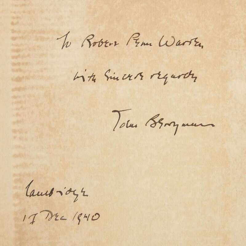 Norfolk, Conn.: New Directions, (1940). First edition (one of only 800 copies printed). 8vo. 221 pp. Inscribed: "To Robert Penn Warren/with sincere regards/John Berryman/Cambridge/17 Dec 1940" on front paste-down. Original blue cloth, stamped in gilt; in original unclipped dust-jacket, spine darkened, worn slightly at extremities. In a three-quarter cloth over marbled paper-covered boards fall-down-back box.