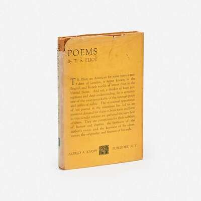 New York: Alfred A. Knopf, 1920. First American edition. 8vo. 63 pp. Original tan paper-covered boards, stamped in brown, bottom edge of rear board bumped; ownership inscriptions on front free endpaper; in original yellow dust-jacket, lettered in green, top of spine panel chipped, chipping and small closed tears along top and bottom front and rear panels, scattered minor soiling. Gallup A4b.