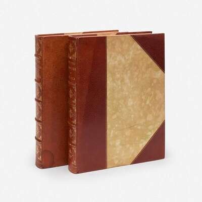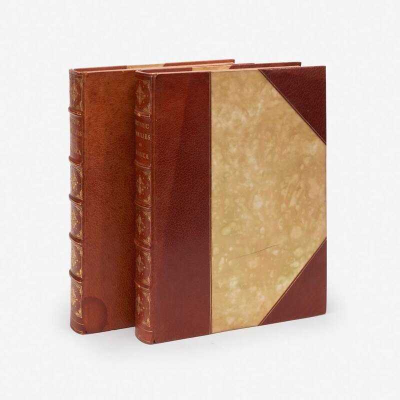New York: Historic Families Publishing Association, no date (ca. 1907). In two volumes. Folio. (x), 380, (4); (xii), 336, (4) pp. Illustrated in color and in black and white. Contemporary three-quarter brown morocco, unevenly faded, and with a small water stain at bottom left of front board of the Schuyler volume, stamped in gilt, over marbled paper-covered boards; top edges gilt, other edges untrimmed. Book-plate of Alexis and Elizabeth du Pont on front paste-down of both volumes.