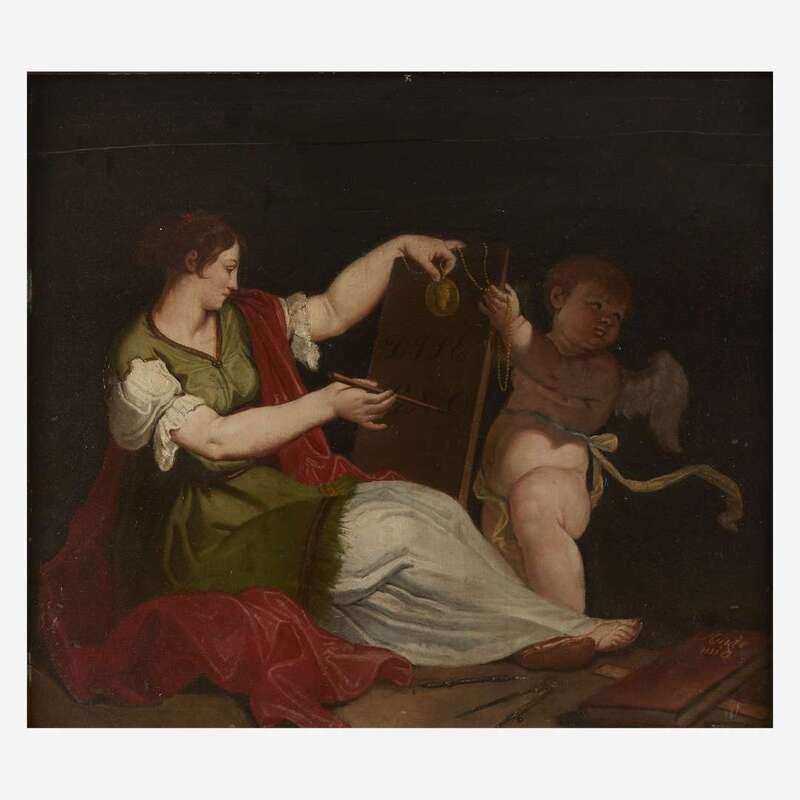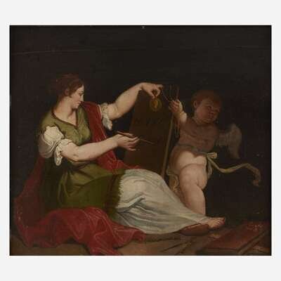 Spanish School (18th Century) Allegory of Painting (Sopra Porta)