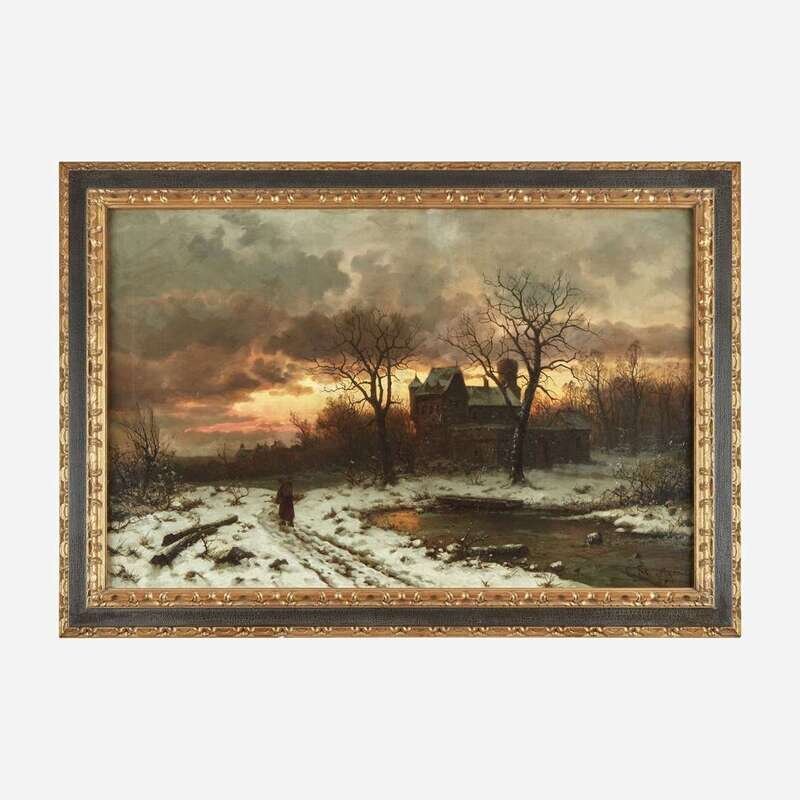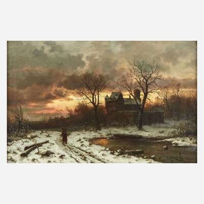 Ernesto Strigelly (German, 19th Century) Winter Twilight in the Rhine Valley