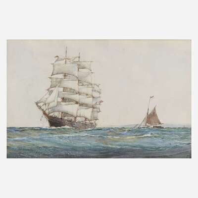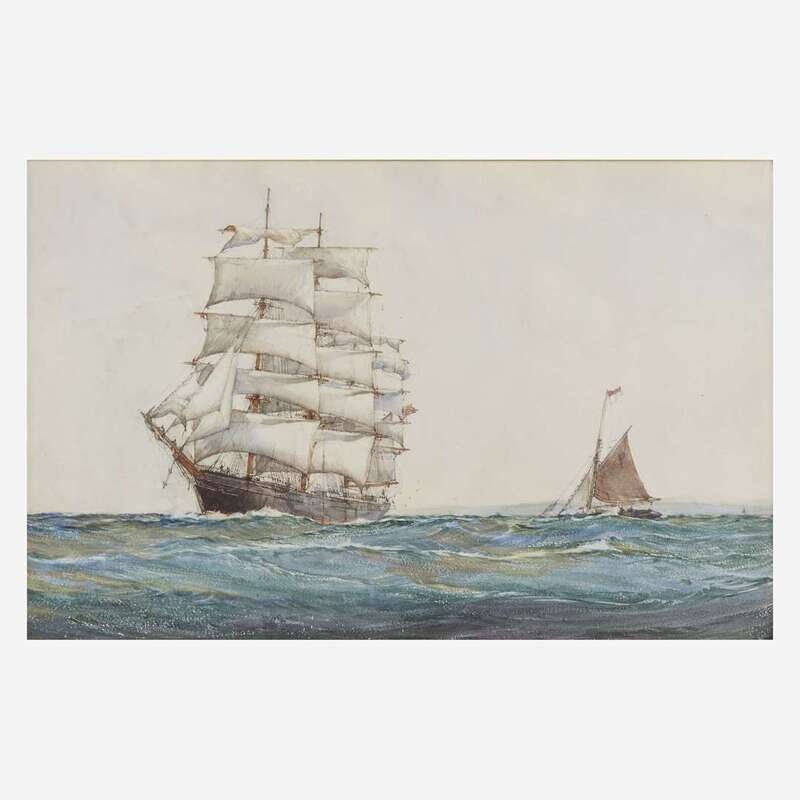 Montague Dawson (British, 1895-1973) Outward Bound (Drafting the Pilot)