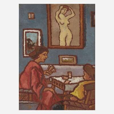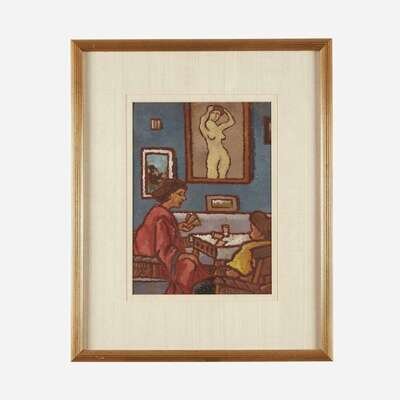 József Rippl-Rónai (Hungarian, 1861–1927) Interior with Two Women Playing Cards; with Figure Studies verso