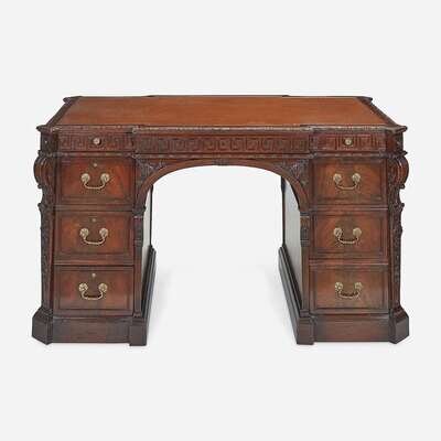 A George III Chippendale Style Carved Mahogany Partner's Desk 20th century