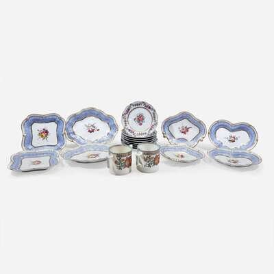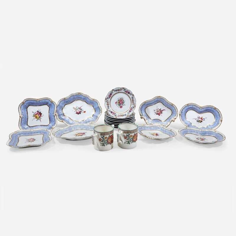 An Assembled Group of Eighteen Pale Blue and Floral-Decorated English Porcelain Table Wares Worcester and other, 19th century