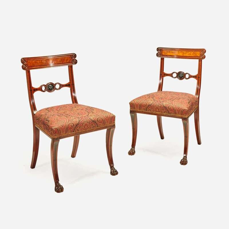 A Pair of Regency Ebony-Inlaid Walnut Side Chairs First quarter 19th century